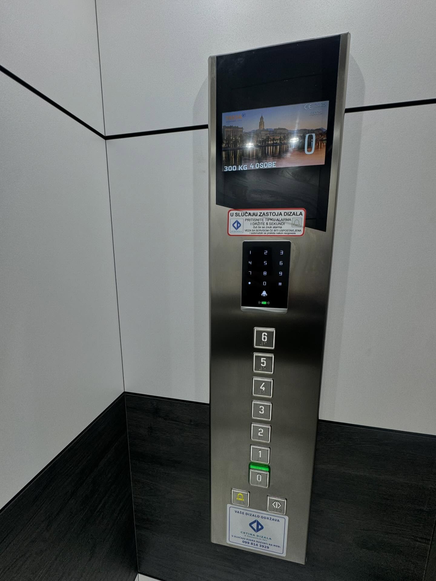 Novo dizalo odlikuje se elegantnim inox vratima, mramornim podom i pažljivo odabranim završnim detaljima koji se skladno uklapaju u interijer zgrade. Rezultat je moderniziran ulazni i stubišni prostor koji djeluje uređenije, suvremenije i reprezentativnije.